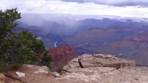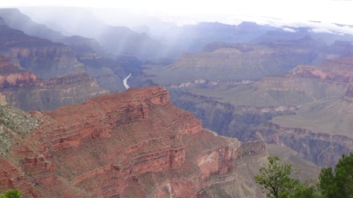 We went to The Grand Canyon on September 29, 2016. It rained that day. One of the pictures shows the Colorado River.